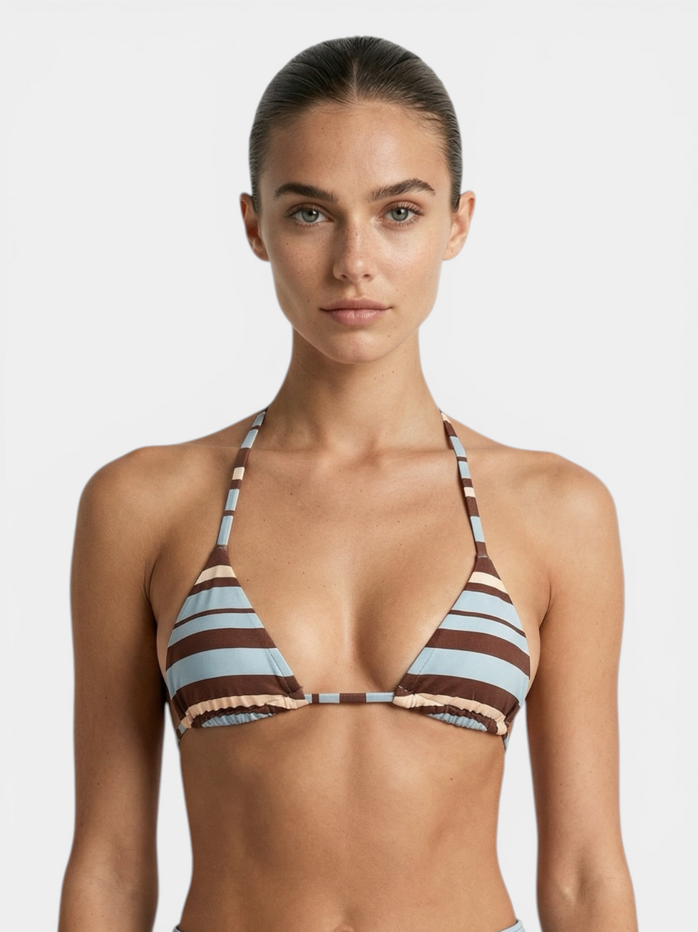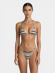 Minimalist stripes meet a strappy triangle top with adjustable ties and cheeky bottoms for a flattering fit. Pair with chunky flip-flops and a cap for a relaxed, effortless beach look.
