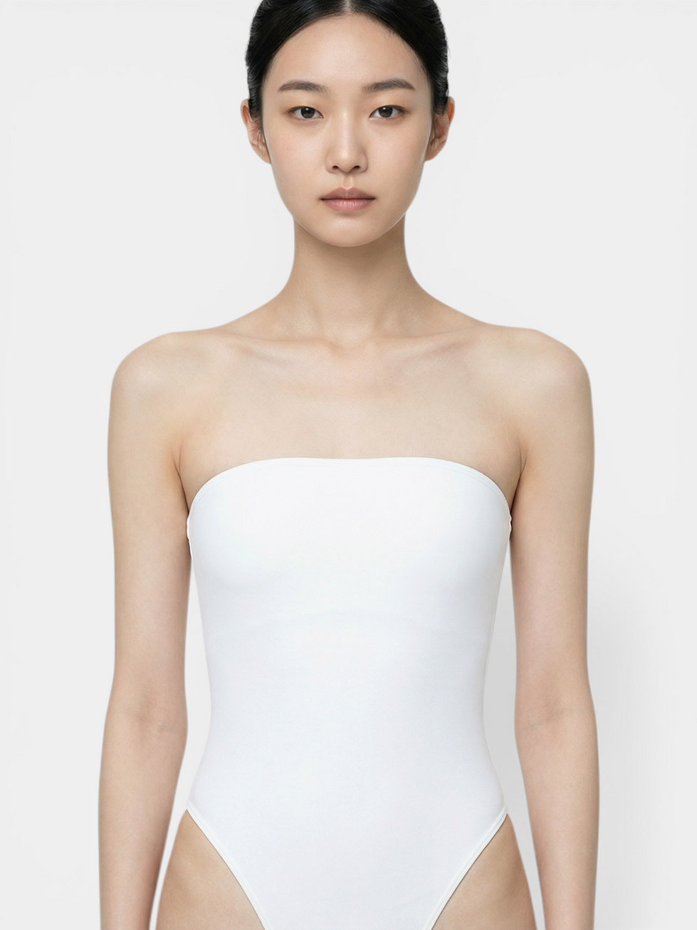 A sculpted bandeau swimsuit with high-cut legs and an understated fit that lengthens and flatters. Effortless, timeless, and essential to summer.